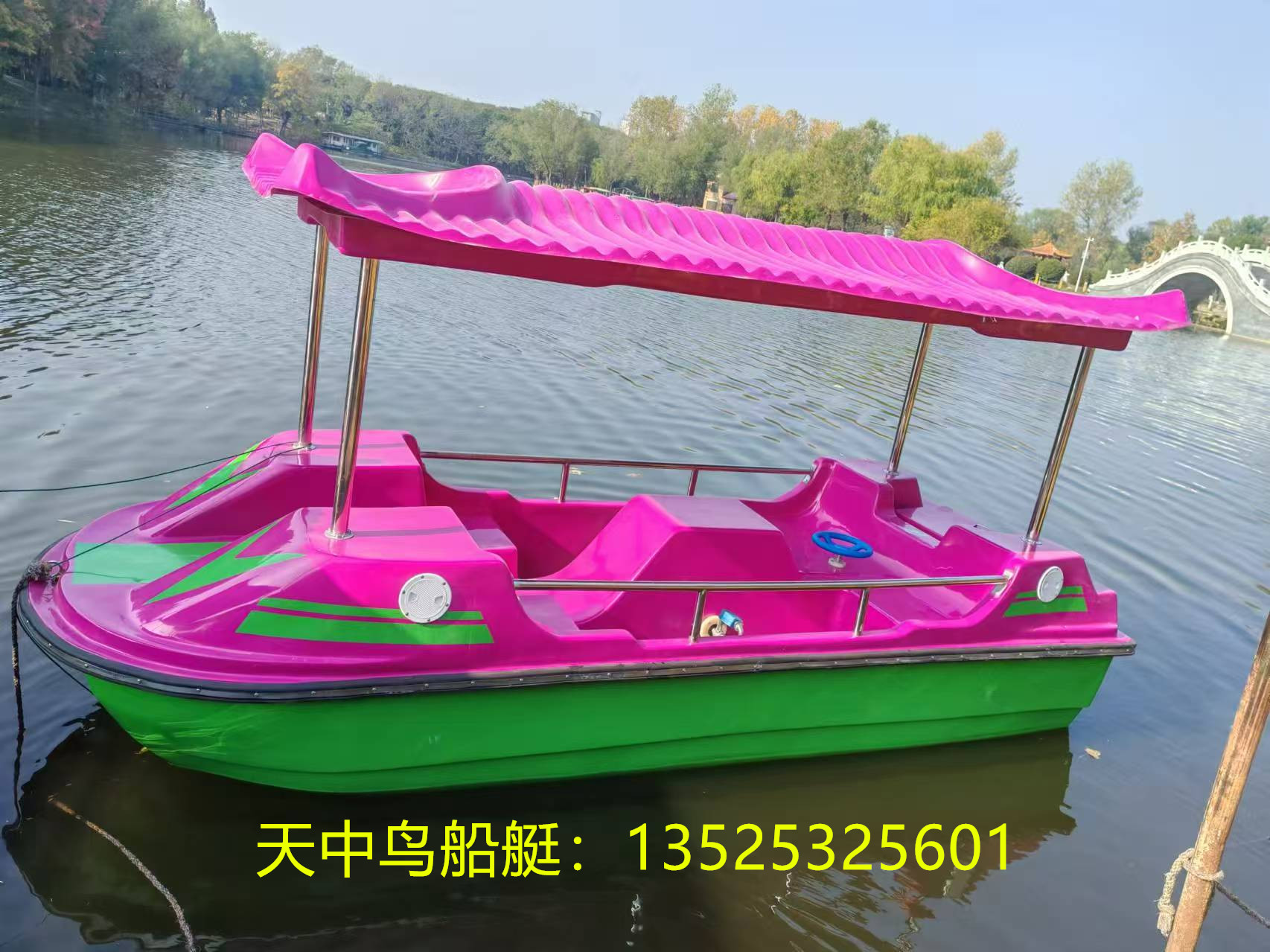 不管是情侣并肩而坐,轻声细语间共享湖光美景;还是家人结伴,孩子踩着踏板嬉笑打闹,定格温馨的亲子瞬间;又或是独自泛舟,放空思绪,与自然温柔相拥,脚踏船都能带来最纯粹的快乐。它没有复杂的操作,只需轻踩踏板,便能随心驶向湖中心,远离岸边的喧嚣,独享一片静谧天地。